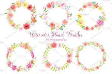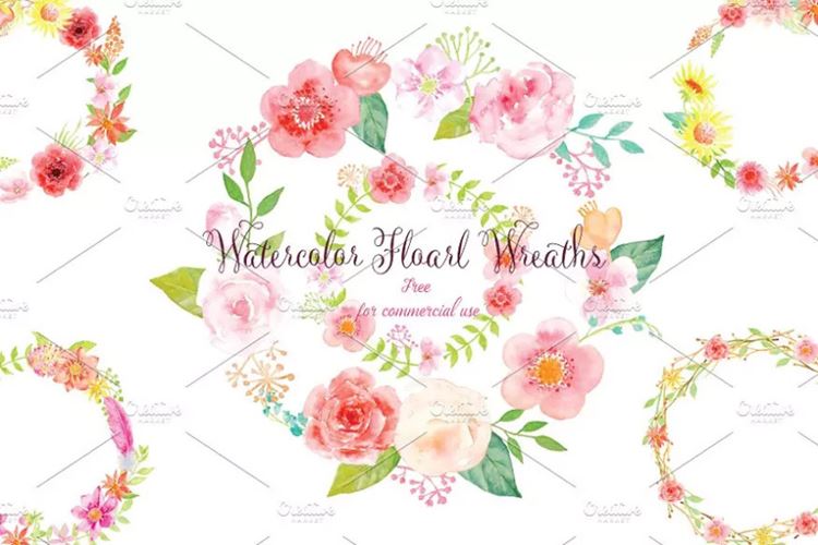 图穷联素材库 » 粉色水彩花环花卉剪贴画 Watercolor pink fl