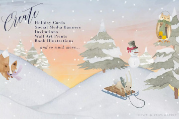 图穷联素材库 » 冬天冬季水彩场景设计 Watercolor Winter S