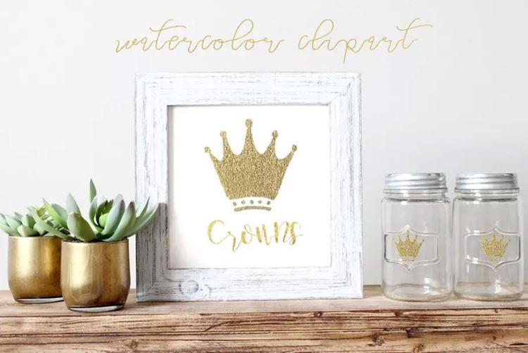 图穷联素材库 » 皇冠水彩剪贴画 Crowns watercolors cli