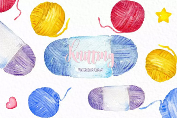 图穷联素材库 » 针织毛线水彩剪贴画图案 Knittings watercol