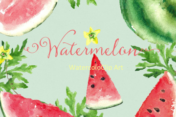 图穷联素材库 » 西瓜水彩剪贴画 Watermelon watercolor