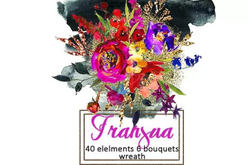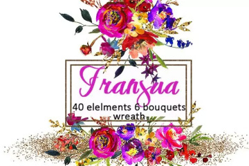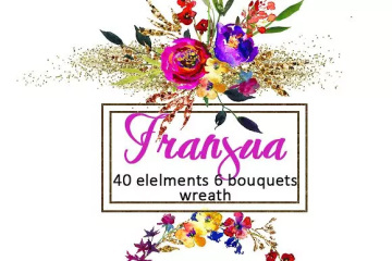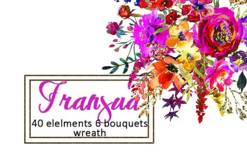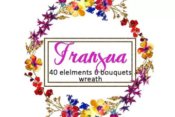 40 + PNG中分离的水彩元素,最大的为8×8′ (20x20cm)。这个集合的元素来自几个不同的集合。