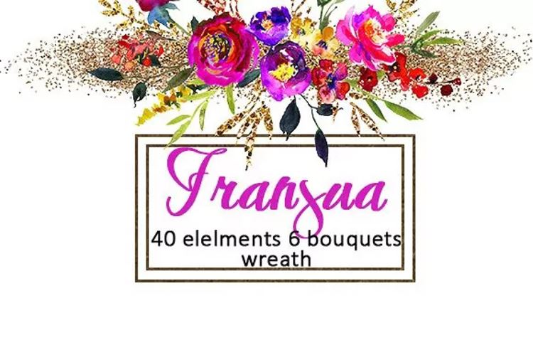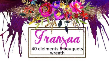 图穷联素材库 » 紫金水彩花花卉插画剪贴画 Purple Gold Water