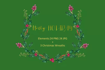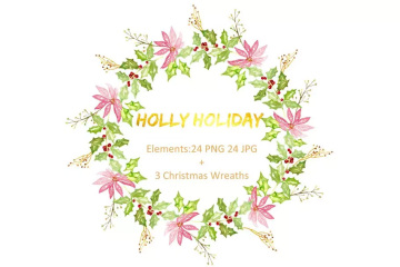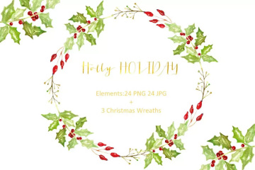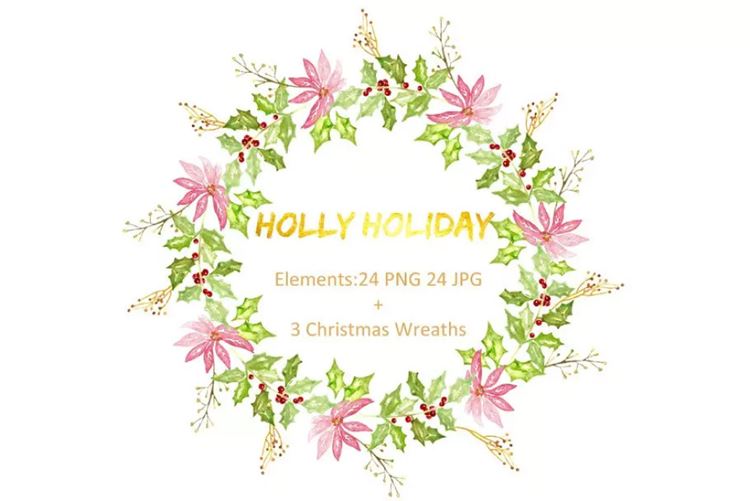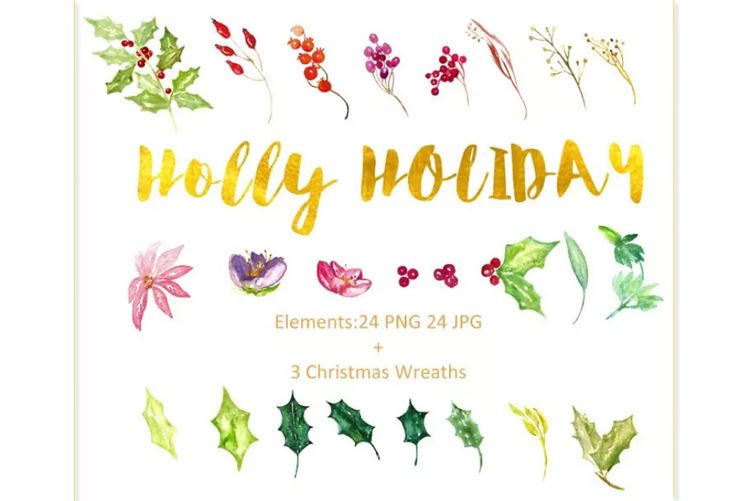 图穷联素材库 » 水彩花卉剪贴画 Holly Premium watercol