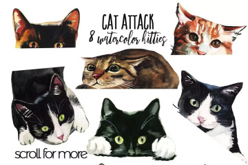 图穷联素材库 » 愤怒的小猫水彩剪贴画 Cat Attack Watercol