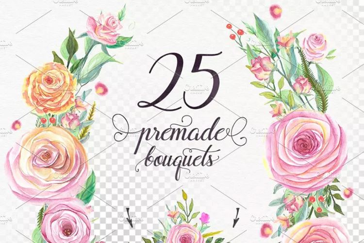 图穷联素材库 » 水彩花卉元素、花环婚礼 Watercolor flower