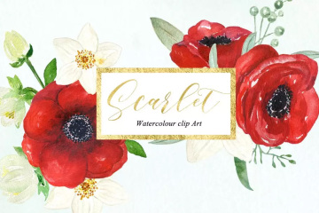 银莲花水彩剪贴画 Anemones scarlet Wate