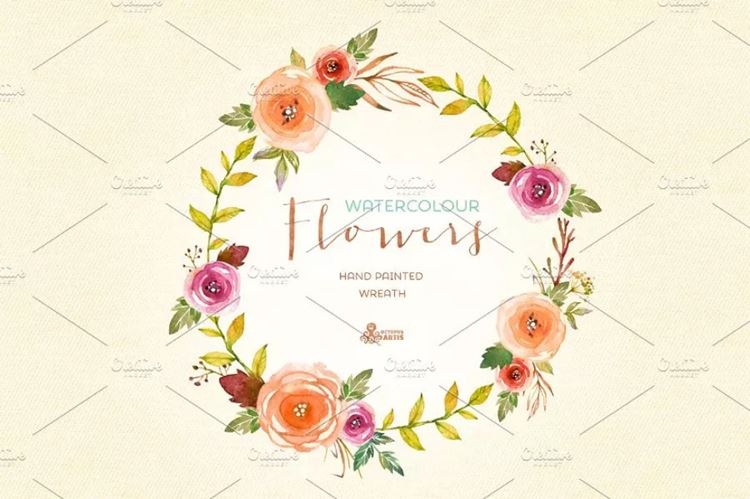 图穷联素材库 » 水彩花卉剪贴画 Watercolor Flowers Pac