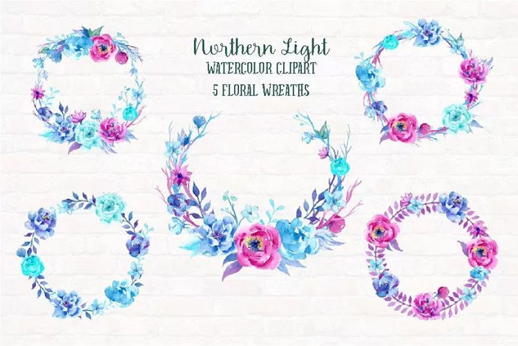 北极光色彩花卉水彩剪贴画 Watercolor Clipar