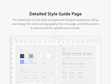 使用嵌套符号,文本样式和图层样式,只需单击几下即可轻松更改线框的整体外观。只需从文件中内置的样式指南页面更改颜色和排版,然后单击更新。所有符号和屏幕都将相应调整。