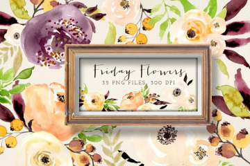 图穷联素材库 » 35个手绘花卉水彩图形元素 Friday Flowers
