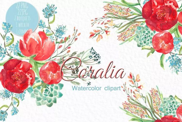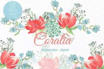这组剪贴画合集带有珊瑚牡丹和柔和的蓝色花朵元素,可用于设计您的徽标,博客,邀请函,数字项目,网站,剪贴簿,婚礼请柬等等!每个元素都被涂在水彩纸上,在Photoshop或在线编辑器等编辑软件中,大小可以被改变。