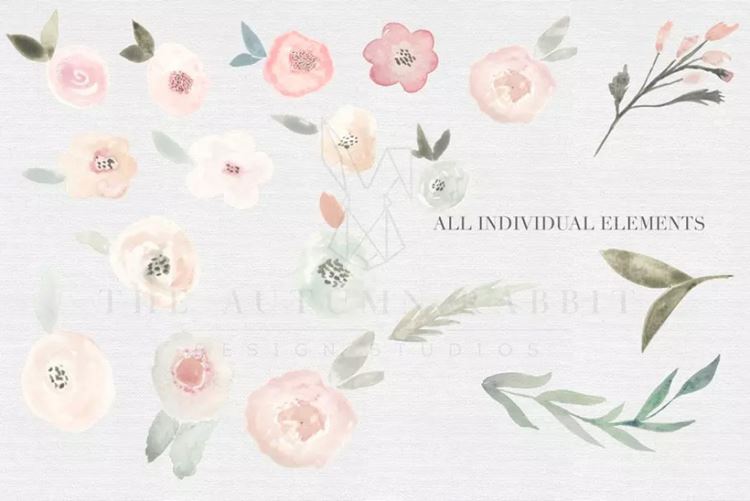 图穷联素材库 » 春天花卉水彩剪贴画 Spring Floral Waterc