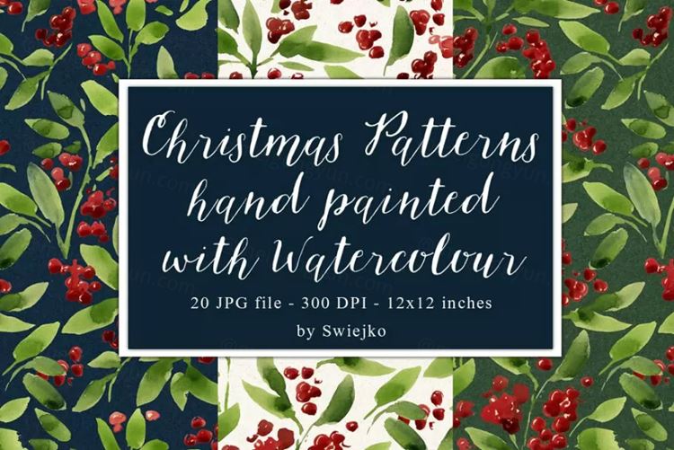 图穷联素材库 » 圣诞主题水彩植物花卉图案纹理 Watercolor patt