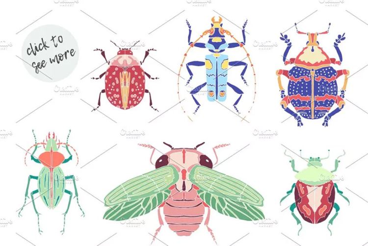 多彩多配色甲虫矢量水彩图案,有时候令人毛骨悚然的甲虫,通过手绘后显得特别可爱。你可以尝试你在的设计项目上加上这些色彩斑斓的元素,显得特别有趣和吸引人!
