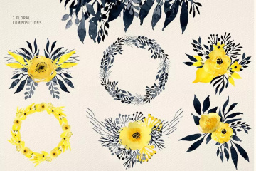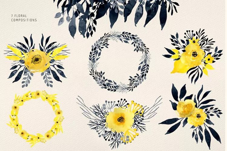 图穷联素材库 » 黑色格调水彩花卉图案 Dark Watercolour Fl