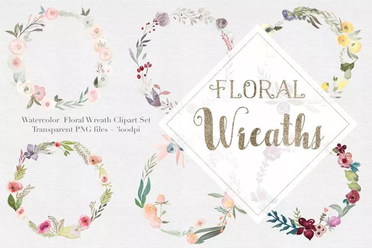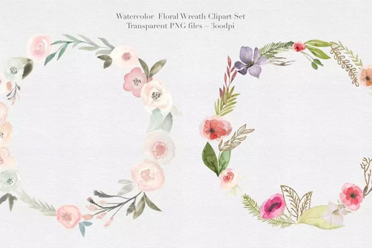 图穷联素材库 » 水彩花环插画集 Watercolor Floral Wrea