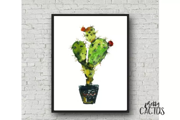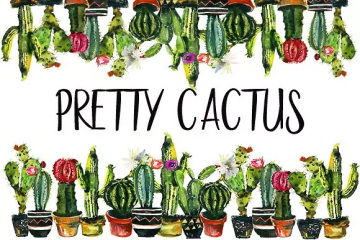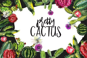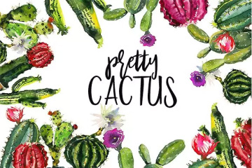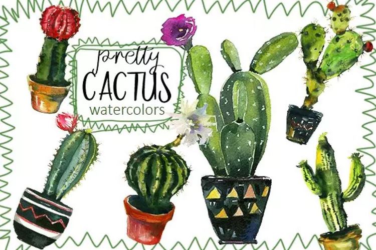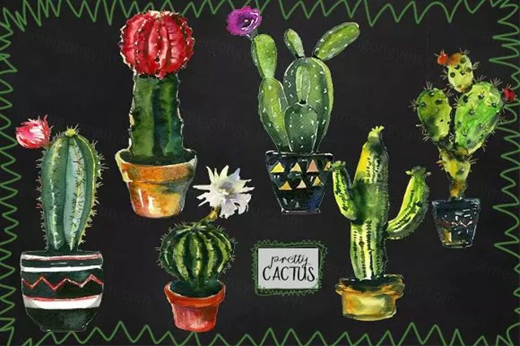 仙人掌水彩剪贴画 Pretty Cactus Waterco