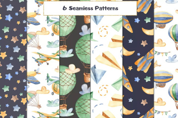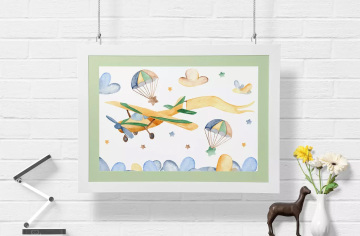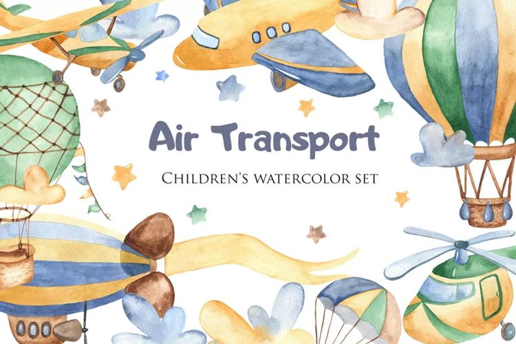 图穷联素材库 » 卡通水彩风格空运交通工具PNG插图素材 Watercolor