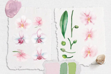 图穷联素材库 » 清新手绘水彩兰花花卉插图 Watercolor orchid