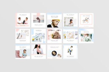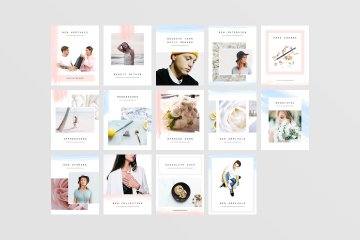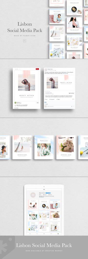 清新淡雅的水彩社交媒体排版设计模板 Lisbon Social Media Pa