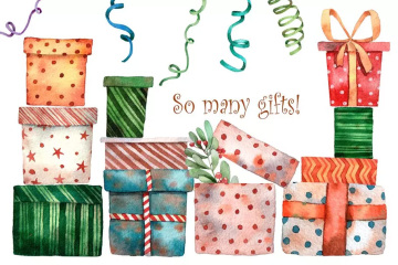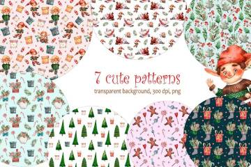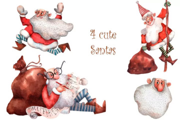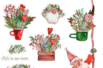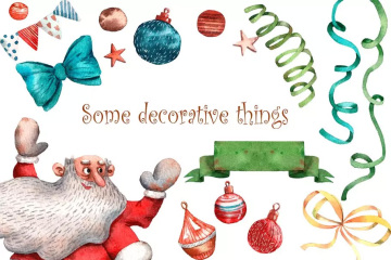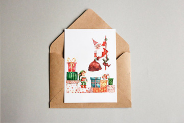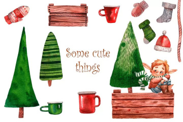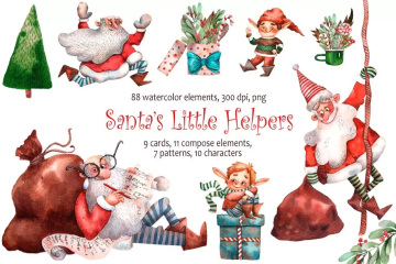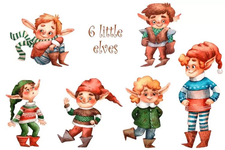 图穷联素材库 » 圣诞老人的小帮手水彩插画