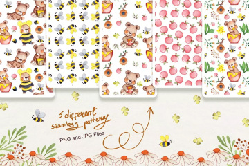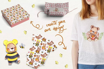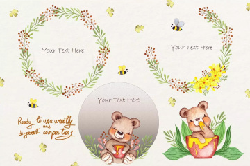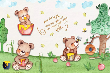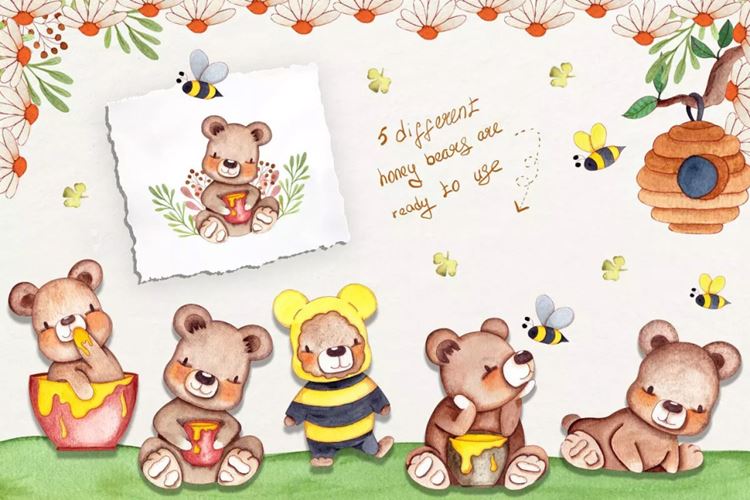 图穷联素材库 » 可爱的蜜蜂 熊水彩插画