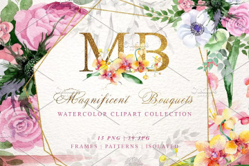 图穷联素材库 » 华丽的花束水彩PNG剪贴画