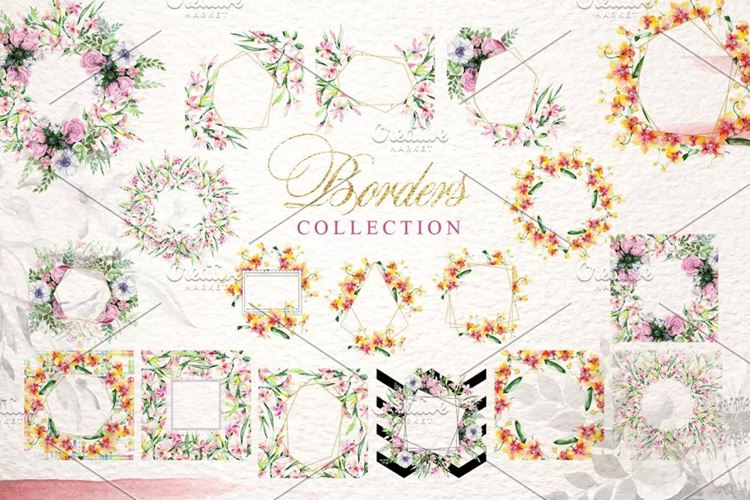所有插图都非常详细。水彩画元素可用于背景,纹理,图案,框架或边框。可以打印或用于任何您想要的东西。完全可编辑(大小,颜色等)。使用的可能性是无穷无尽的!