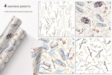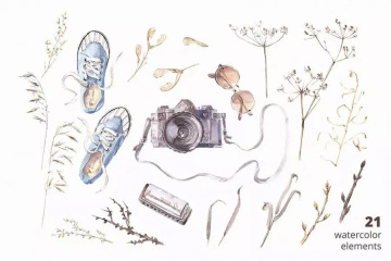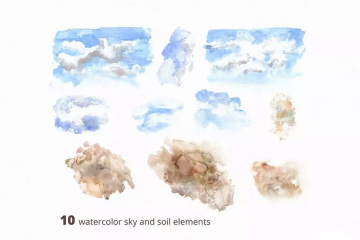 充满活力的水彩、有纹理铅笔、干枯草药和透明的蓝天,让您的品牌与众不同特别难忘。