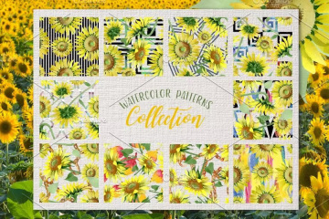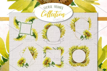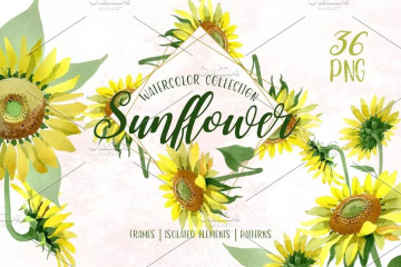 向日葵黄色水彩元素设计36个文件的剪贴画。可用于DIY,婚礼请柬,贺卡,报价,博客,海报等方面。