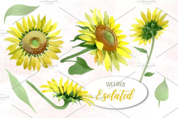 图穷联素材库 » 向日葵黄色水彩元素插画
