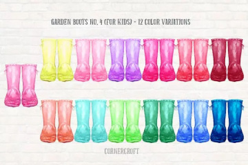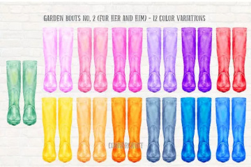 这是44双不同颜色的花园靴的集合,它们是婚礼请柬、贺卡、派对邀请、织物设计和各种艺术项目的完美选择。一双靴子大约4“x7”和4.5“x5.5”,png透明背景,300 dpi。