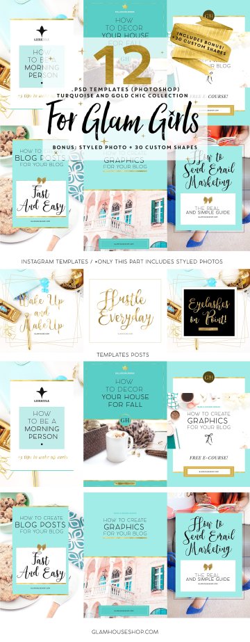12套女性绿松石烫金社交媒体版式模板素材 TEMPLATES FOR GLAM