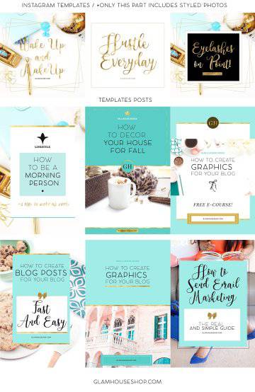 图穷联素材库 » 12套女性绿松石烫金社交媒体版式模板素材 TEMPLATES FOR GLAM