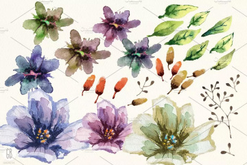 图穷联素材库 » 色彩丰富的水彩花园花卉剪贴画 Aquarelle water