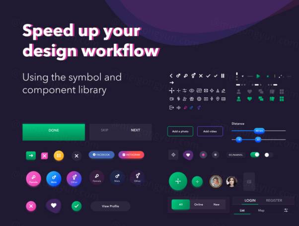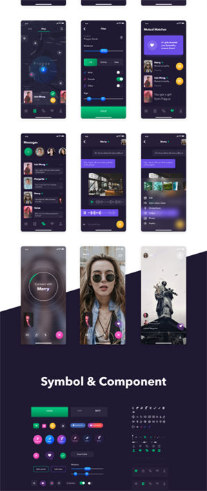 图穷联素材库 » 类似“探探”约会移动APP程序UI界面工具包 Desire UI Kit