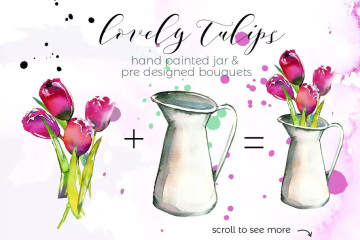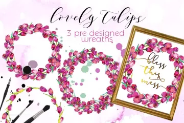 漂亮的手绘郁金香,花束,花环等等!非常适合用于创建博客设计,邀请,企业标识,墙壁艺术版画和许多美丽的东西!