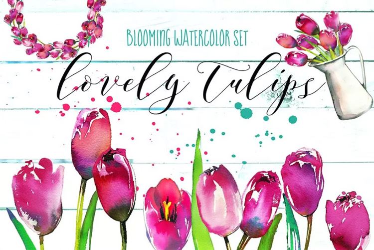 图穷联素材库 » 粉红郁金香水彩花卉 Pink Tulips Watercol