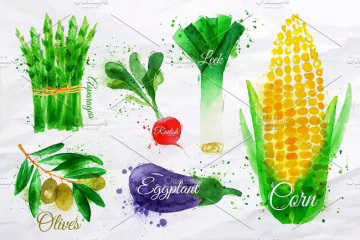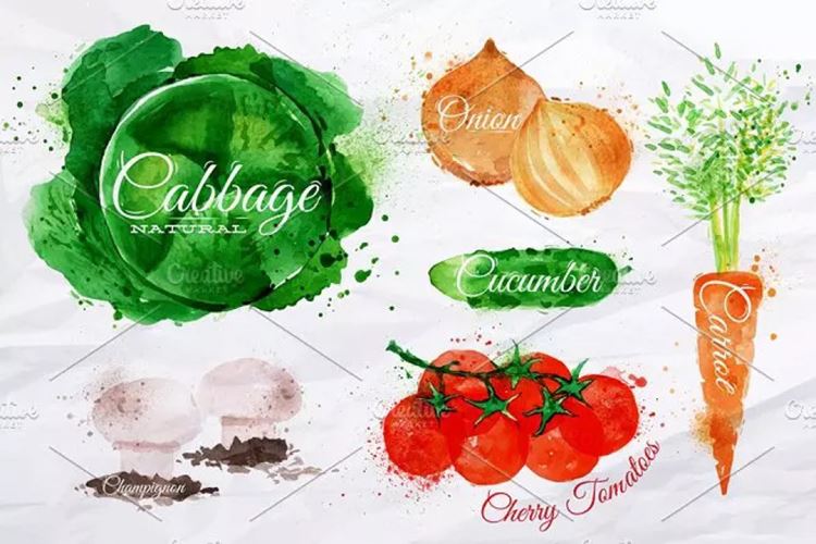 常见蔬菜水彩剪切画素材包 Vegetables Waterc