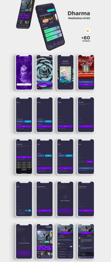 专为Sketch和Adobe XD设计的高品质Meditation App UI