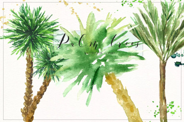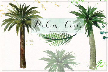 图穷联素材库 » 椰子树水彩剪贴画 Palm trees. Watercolo