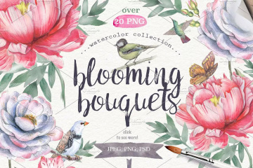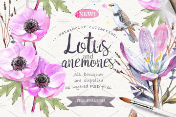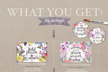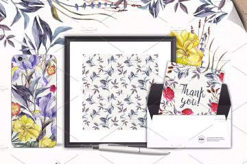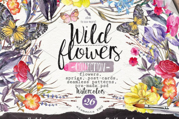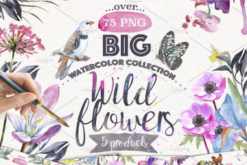 这组水彩系列《野花》里面有你所需要的一切元素,有70多种花卉元素和30层Psd文件。