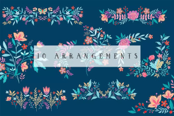 明亮和异想天开的花卉特点覆盖了整个剪辑集,并且带有民间艺术的影响。这将是很好的印刷在织物、家具和服装、婚礼用品,一般的邀请函等设计项目的理想元素。