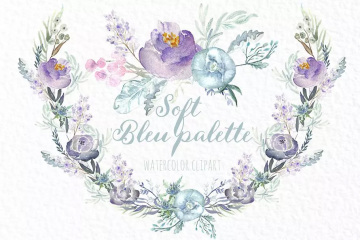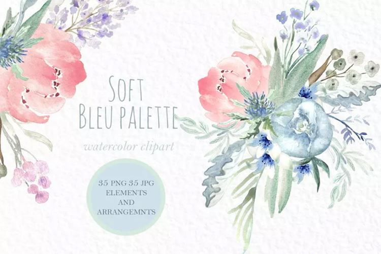 图穷联素材库 » 淡蓝色牡丹水彩花插画 Soft Blue Peonies W