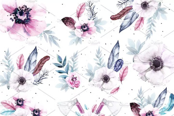 图穷联素材库 » 羽毛和浣熊水彩剪贴画 Watercolor Feathers