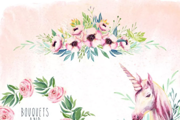 这组合集包括了77个PNG文件,带有玫瑰,牡丹,海葵,树叶,树枝,花束,独角兽,浆果等元素。