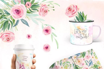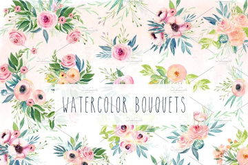 图穷联素材库 » 春天之吻水彩花卉剪贴画 Watercolor Floral