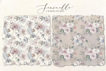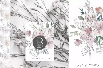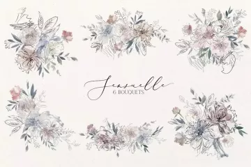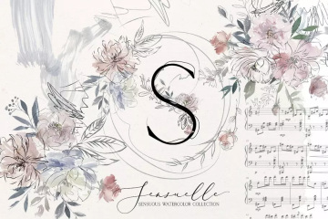线条性感水彩花卉剪贴画、字体 Sensuale Waterc