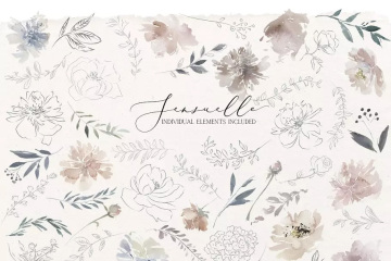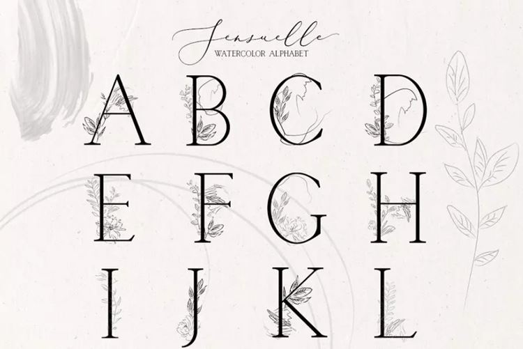 图穷联素材库 » 线条性感水彩花卉剪贴画、字体 Sensuale Waterc